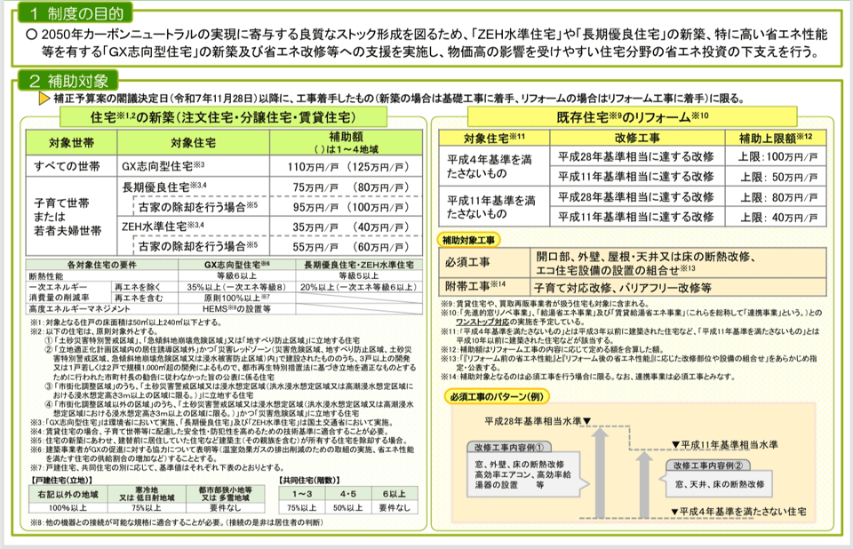 新築だけでなくリフォームも対象となり、多くの世帯が利用できる制度設計となっています。